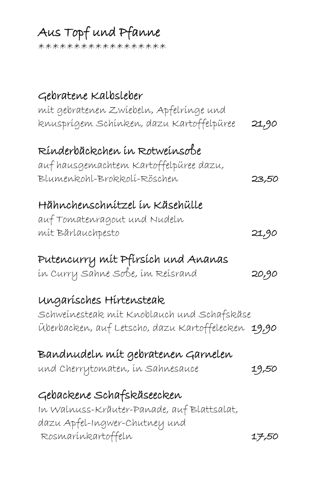 Unsere Speisekarten im Überblick